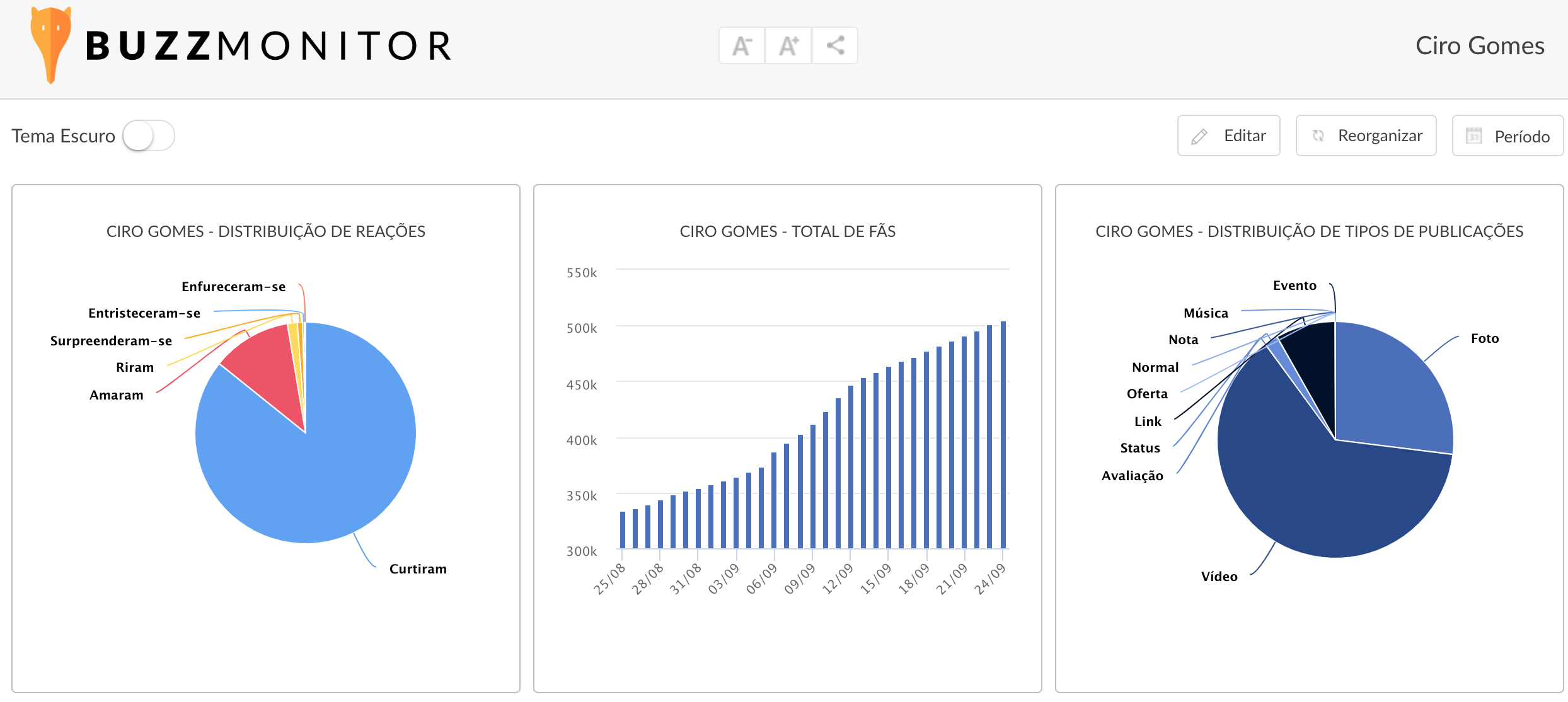 Importante para empresas que usam diversos módulos no Buzzmonitor e semanalmente/mensalmente precisam apresentar relatórios sobre o desempenho da marca no período. Colocando todos os relatórios em apenas um dashboard, basta compartilhar o link com toda a equipe!