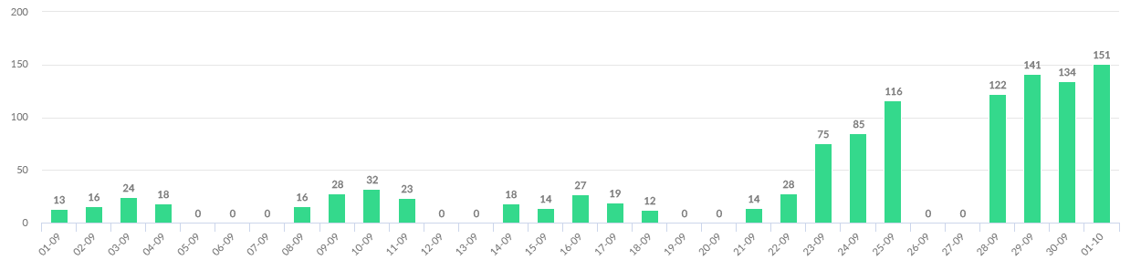 Quantidade de mensagens que a marca recebeu no WhatsApp, divididas pelos dias do período analisado.