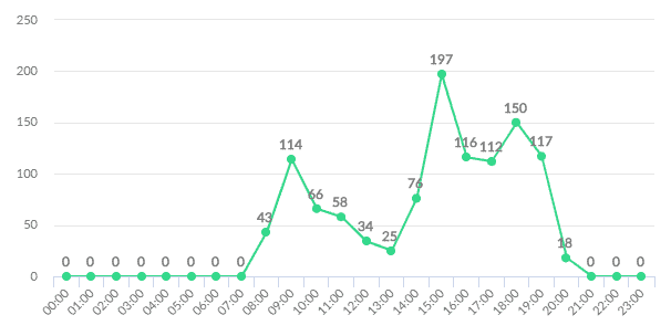 Quantidade de respostas enviadas pela marca, dividida por hora.
