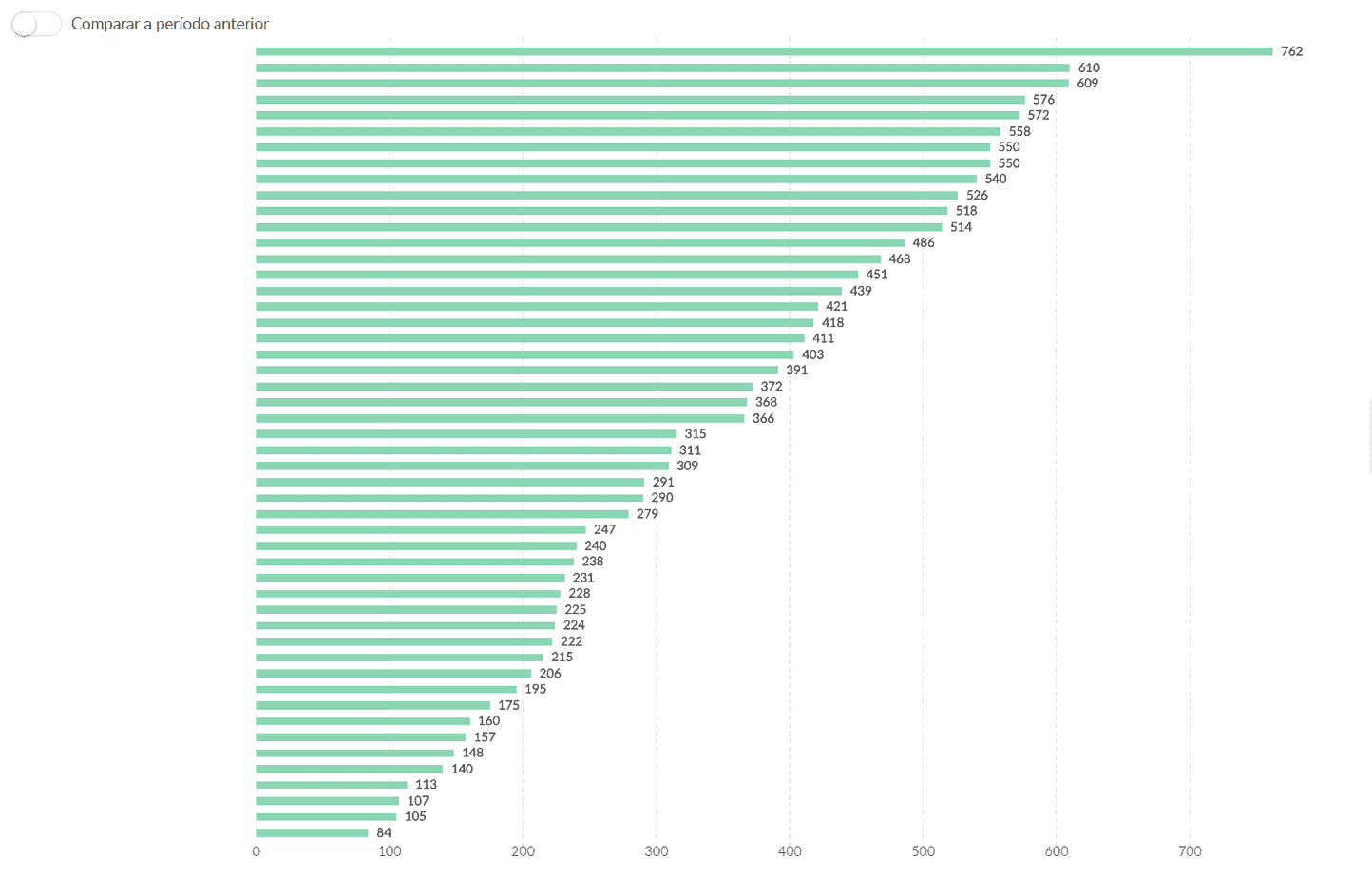O total de respostas enviadas por mês. Guia a análise de produtividade em uma visualização macro do atendimento.