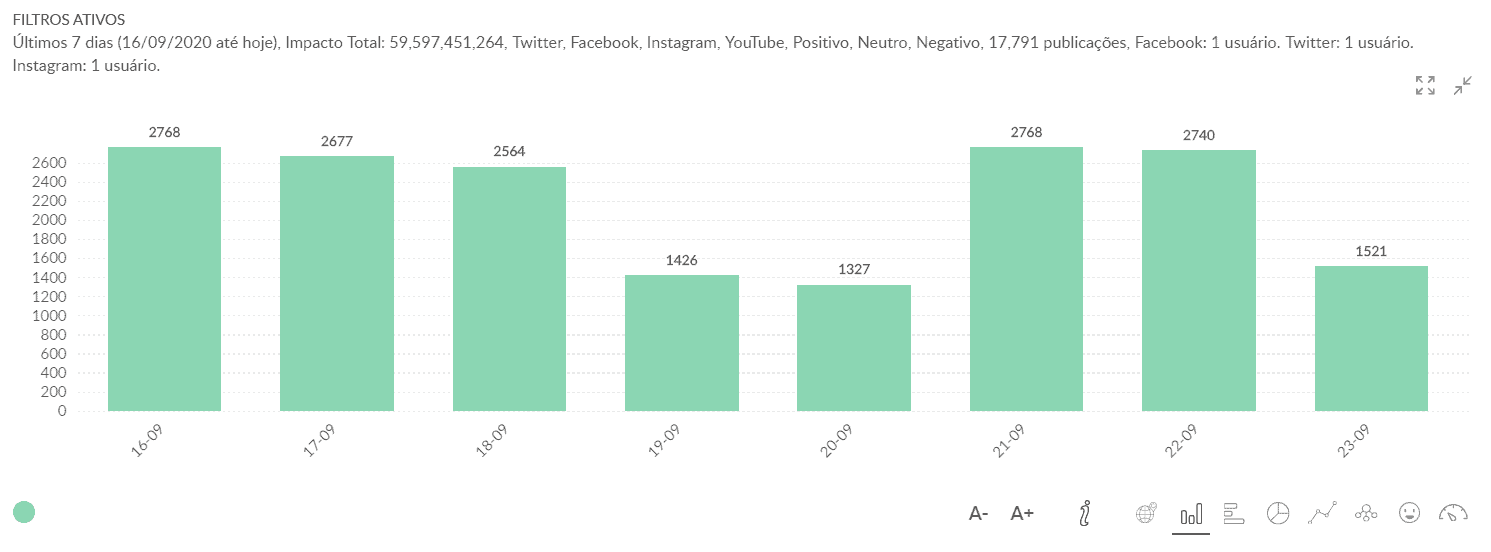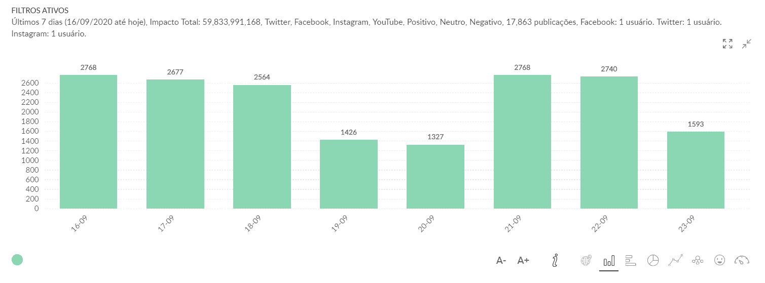 Além desses gráficos gerados automaticamente, com a flexibilidade dos relatórios personalizáveis da Buzzmonitor, é possível gerar centenas de outras combinações de dados e obter a métrica exata que você deseja. As possibilidades são infinitas.