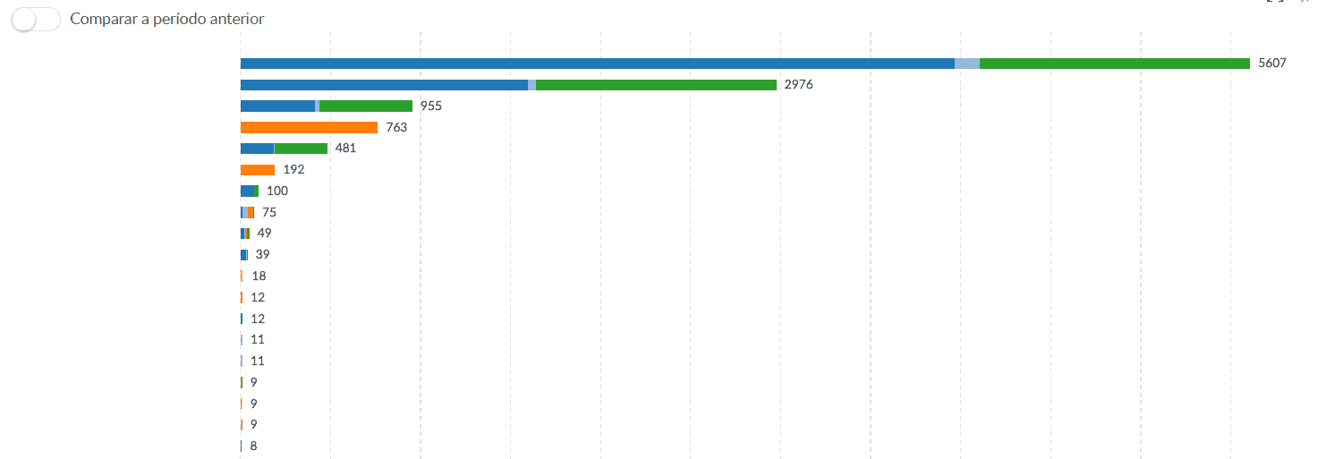 O total de respostas enviadas divididas por rede social. Mostra separadamente quais redes sociais tiveram mais atendimentos realizados no período escolhido.