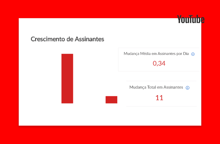 Analisar a mudança de assinantes no seu canal por dia, ajuda a entender se seus conteúdos estão trazendo novos assinantes ou se está ocorrendo uma perda.