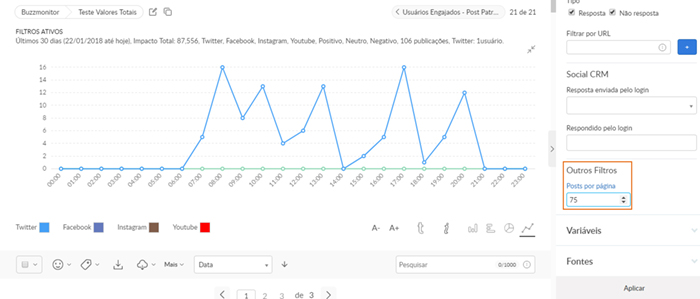 Essa novidade é ótima para marcas com muito buzz! Agora o Buzzmonitor volta a permitir a exibição de até 100 interações por página, facilitando a análise feita pelos profissionais de social media nas páginas do Buzzmonitor.