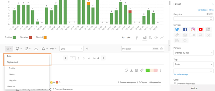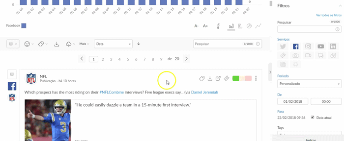 Agora é possível filtrar mais de 40 interações por cada relatório. Durante o monitoramento de uma crise, por exemplo, você consegue filtrar uma série de publicações que podem ser relevantes para seu relatório e adicioná-las aos seus filtros do report.