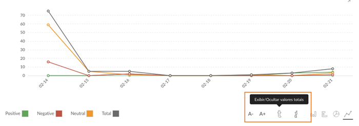 Gráficos de linha agora podem exibir uma linha com todos os valores somados, facilitando o cálculo para o período selecionado. A exibição desses valores é opcional.