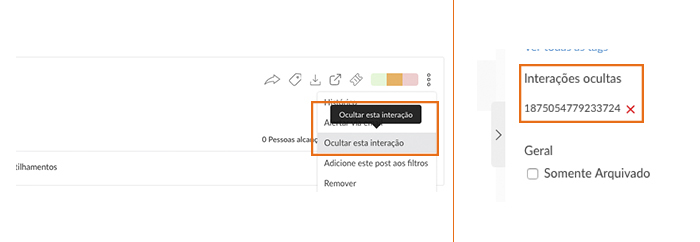 Quer ignorar alguma interação e seus respectivos comentários/respostas? Agora é possível fazer isso, negativando a interação que você não quer exibir no relatório. Assim o analista consegue retirar de seus reports interações irrelevantes e que não acrescentam em nada para seu cliente. As interações que foram ocultadas irão aparecer nos filtros do relatório.