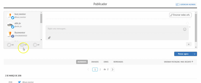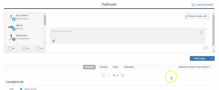 Antes quando se agendada uma série de publicações, como para férias ou feriado, todos os posts ficavam em uma página infinita no publicador. Agora foi feita uma paginação, deixando esse módulo mais organizado, separando as interações publicadas/agendadas por páginas.