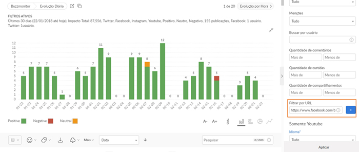 Além do botão que já permite o filtro por uma interação, agora também é possível filtrar diretamente usando a URL da interação. Ou seja, se você está monitorando um post que está gerando uma crise para sua marca, agora será possível filtrá-lo em seu relatório usando diretamente a URL daquela interação.