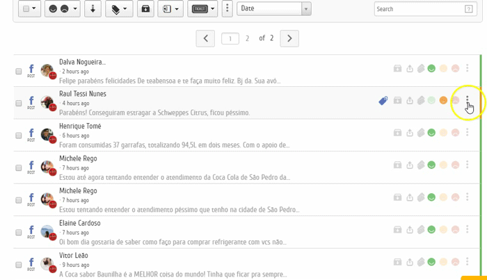 O novo botão “Logs” mostrará todo o histórico de mudanças feitas no post, como a adição/remoção de tags, a mudança de sentimento e envio de respostas, por exemplo. O histórico mostrará tanto quem fez quanto o que foi feito. Esse histórico é importante principalmente para equipes com muitos analistas trabalhando em uma mesma conta. Com o histórico de alterações não haverá mais dúvidas sobre o que foi modificado ou sobre quem fez as mudanças.