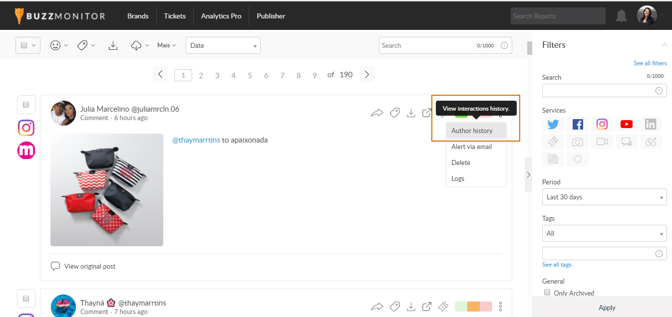 Com o Buzzmonitor, através do módulo de SAC 2.0, é possível armazenar todo o author history das conversas que uma marca tem com seus influenciadores.