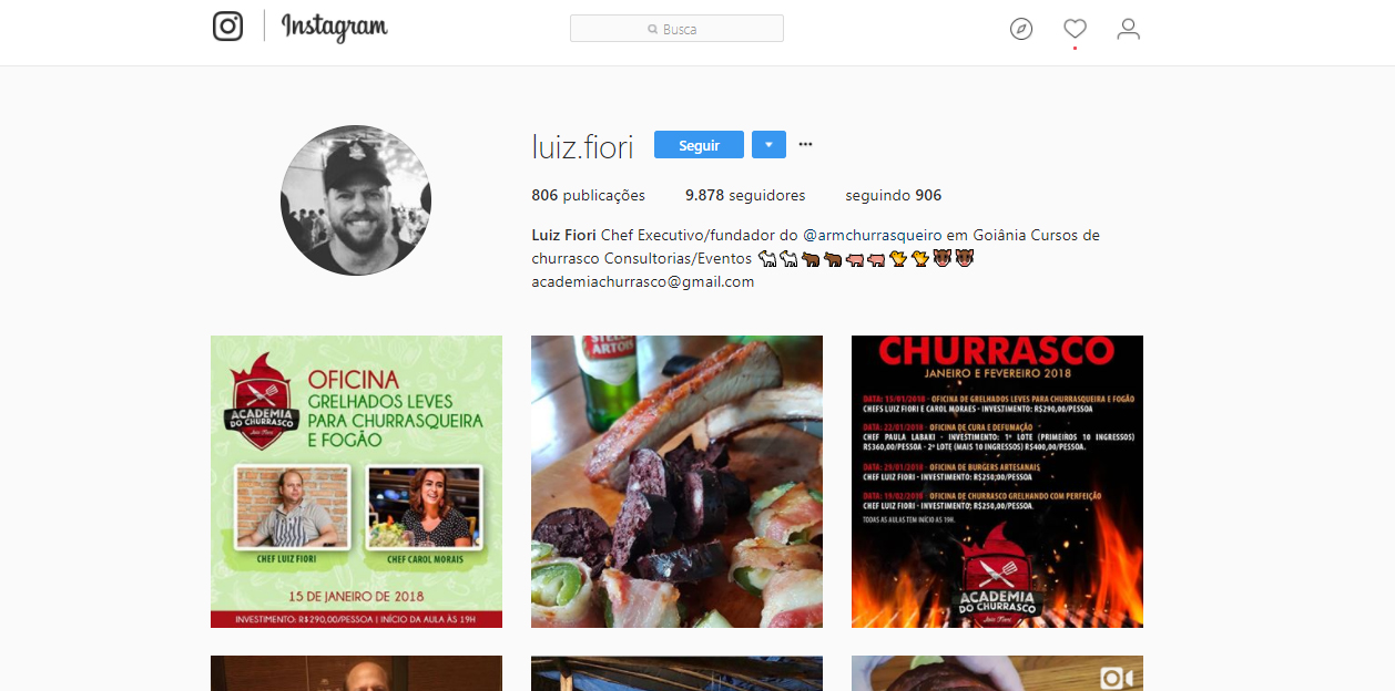 - Timeline: buscando sobre o que eles falam. Neste caso use sua plataforma de monitoramento para monitorar temas. Por exemplo: monitorando o tema “churrasco” é possível encontrar influenciadores como o Luiz Fiori: https://www.instagram.com/luiz.fiori/