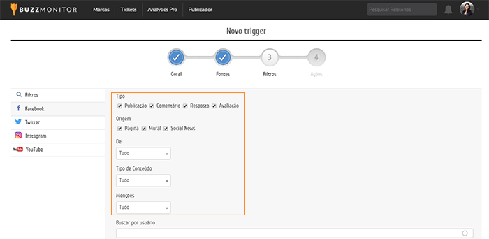 Para criar tickets automáticos, você utilizará o módulo triggers, do Buzzmonitor (veja aqui como criar um trigger para sua conta).