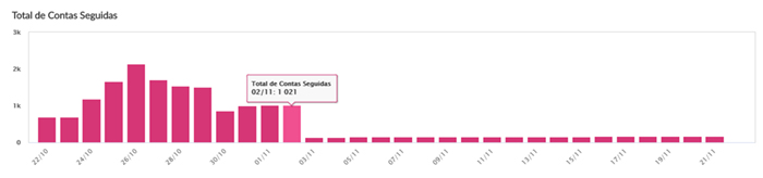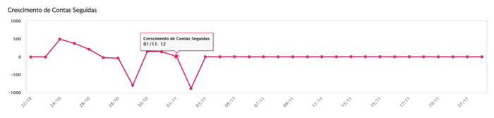 Nesse gráfico, basta passar o mouse por cima de cada dia para ver o número de contas seguidas por data.