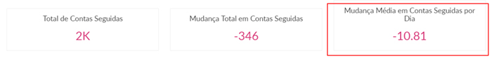 Qual a utilidade desta métrica? Com ela o gestor da marca acompanha a oscilação de mudança média em contas seguidas por dia no período selecionado.