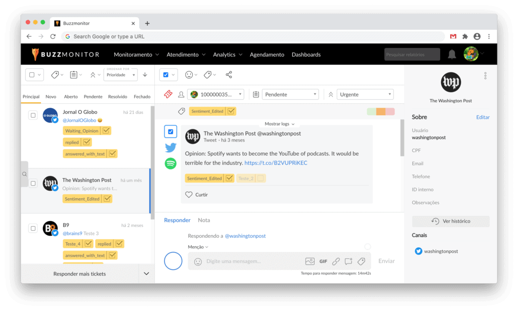 A ideia é a mesma do Buzzmonitor Smart Replies: otimizar a produtividade dos times que usam o Buzzmonitor.