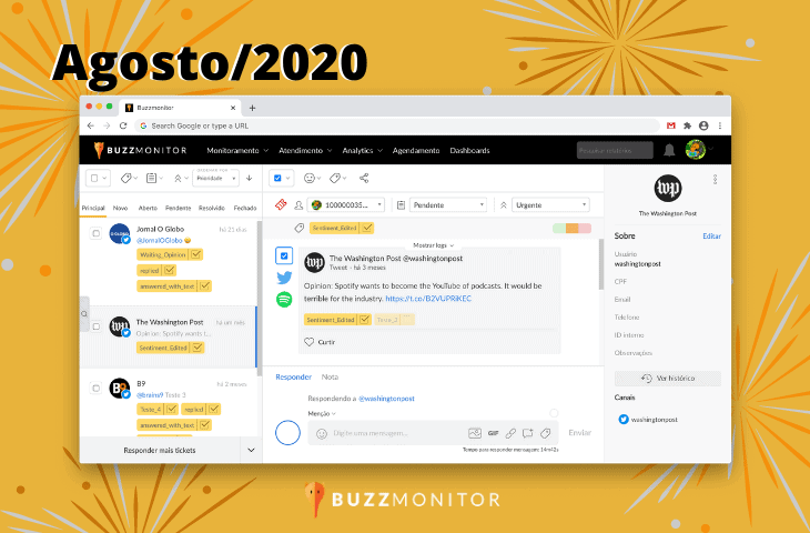A ideia é a mesma do Buzzmonitor Smart Replies: otimizar a produtividade dos times que usam o Buzzmonitor.