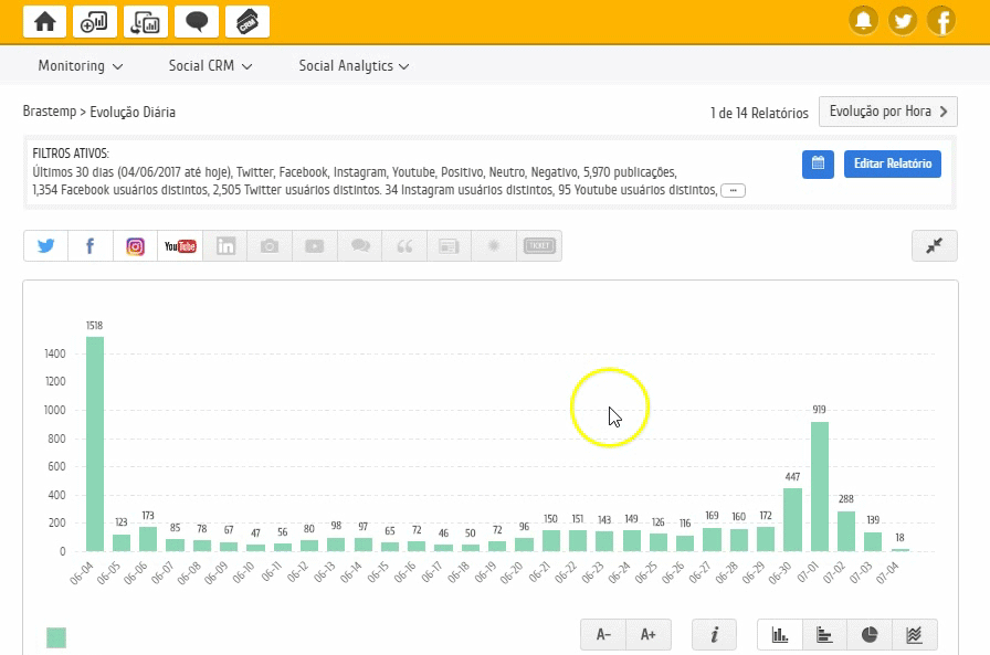 Foi adicionado um novo filtro de língua para Youtube, ampliando assim o leque de monitoramento desta rede social em crescimento expressivo. Tornou-se cada vez mais importante monitorar o YouTube, que hoje conta com 1,5 bilhões de usuários e recentemente anunciou uma série de novidades, como você confere aqui.