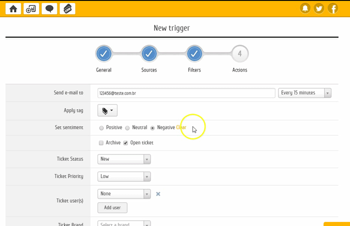 Agora será possível criar um trigger com tickets que serão associados a uma lista de usuários. Cada ticket permanece tendo um único responsável, mas a diferença é que o usuário é escolhido a partir dessa lista e a distribuição de tickets é feita de forma proporcional para estes usuários. Com isso nenhum analista ficará sobrecarregado e todos terão uma quantidade proporcional de demandas de atendimento a cumprir.