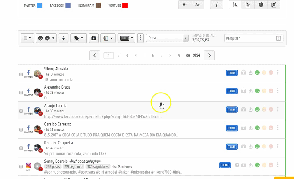 Agora a toolbar do relatório contará com uma nova opção de edição em massa dos status dos Tickets, tornando mais fácil e rápido fazer modificações nos Tickets sem precisar abrir um por um para alterá-los. Veja como tornar seu SAC 2.0 ainda melhor com os Tickets. Com isso, Tickets relacionados ao lançamento de uma nova campanha nas redes sociais, por exemplo, podem ser modificados de uma só vez, agilizando o atendimento e deixando os clientes mais satisfeitos com respostas rápidas para suas publicações, comentários ou respostas.