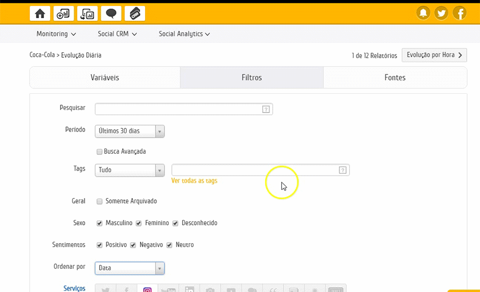 Mais um relatório padrão será criado em monitoramento. O novo relatório padrão adicionado será criado somente com posts das páginas e ordenado pelo engajamento dos posts. O ordenamento passa a ser um filtro fixo dos relatórios, podendo ser salvo. Dessa forma ficou mais fácil monitorar o engajamento dos posts da marca, dado importante para entender como os usuários reagem às publicações, proporcionando ao analista de social media uma visão mais ampla sobre o que está acontecendo na página de sua marca. Post com grande engajamento geram insights sobre como as campanhas da marca devem continuar, enquanto posts com pouco engajamento devem ser estudados para que estratégias sejam criadas e assim as publicações aprimoradas para melhorar o engajamento.