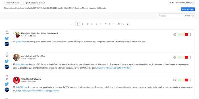 Os relatórios de Top RTs agora mostram os 300 RTs mais relevantes para cada marca. Antes o limite era de apenas 15. Para marcas que têm muito buzz, essa notícia é ótima! O acompanhamento da repercussão de tweets ficou ainda mais prático.