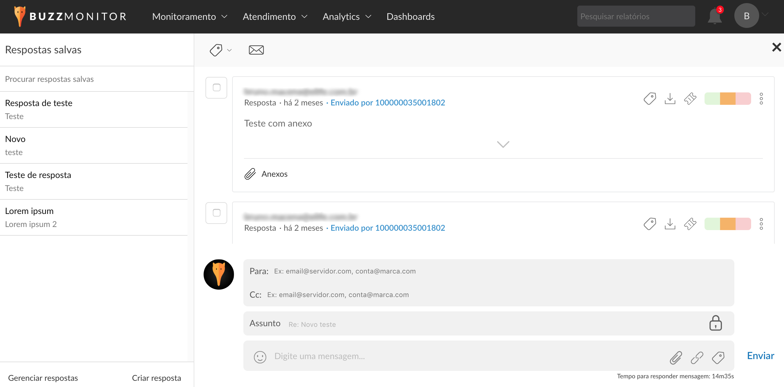 Todo o histórico da conversa do BuzzMail passa a ser exibido diretamente na janela de resposta, facilitando a consulta a e-mails recebidos anteriormente no atendimento. Mais praticidade para acompanhar a resolução de um caso com seu cliente, sem precisar repetir perguntas e solicitar informações que já foram dadas em outros e-mails.