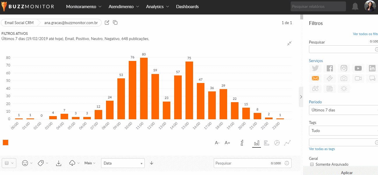 Agora é possível filtrar os e-mails exibidos em um relatório do BuzzMail pelo remetente da mensagem. É possível realizar a busca tanto pelo e-mail como pelo nome. Se você costuma receber e-mails do Reclame Aqui, por exemplo, agora é possível criar um relatório apenas sobre as notificações deste remetente.