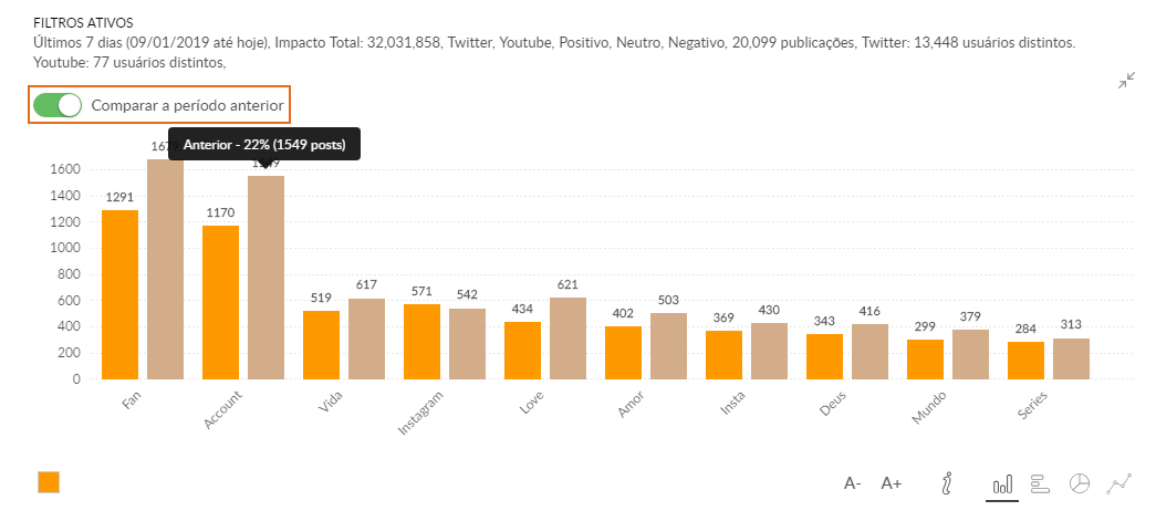 Confronte as diferenças e semelhanças entre os períodos e investigue para compreender as transformações no comportamento do seu público nas redes sociais. Pronto, você já está tomando decisões com base em dados!