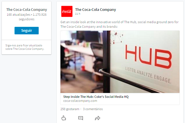 A Coca-Cola é uma das empresas que construiu uma presença forte no LinkedIn, destacando regularmente o conteúdo da revista digital Coca-Cola Journey. De acordo com a marca, muito do tráfego do site vem dos seguidores na rede social.