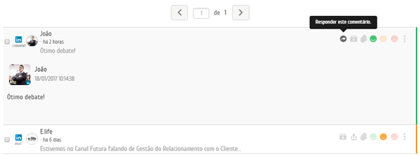 2. Fale com os seus seguidores e analise o volume de mensagens: na mesma área, clicando sobre a pasta LinkedIn, está disponível o relatório que acompanha a movimentação da página. É possível responder comentários de usuários, criar tags, enviar tickets e muito mais.