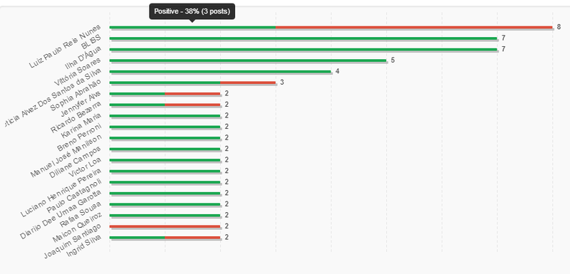 O relatório Top Users, também no módulo Monitoring, disponibiliza uma relação  dos usuários que mais interagem com a sua página, além de mostrar a quantidade de comentários por sentimento.