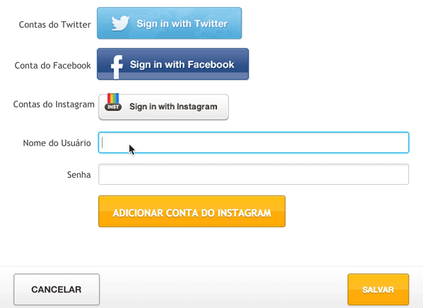 Primeiramente, é necessário ter uma conta no Instagram e sincronizá-la com o Buzzmonitor. No topo superior direito da tela, clique em “Settings”. Então, aparecerá uma tela com seus dados: e-mail, nome, fuso horário, entre outros. Ao final, há as contas sincronizadas: Twitter, Facebook e agora Instagram. Basta preencher o campo do Instagram com nome e senha e suas contas estão sincronizadas.