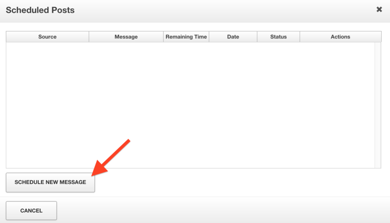 Agora, você pode agendar sua publicação. No topo superior esquerdo, no terceiro botão, clique em “Edit scheduled posts” (editar posts agendados, em português). Então, clique em “Schedule New Message”.