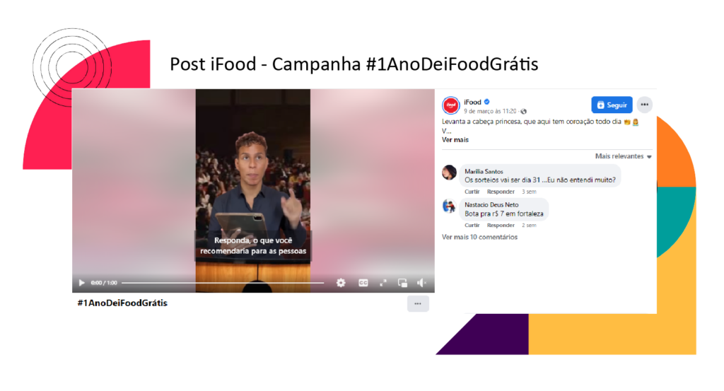 Os três posts com mais engajamento do iFood no mês de março foram relacionados à campanha de aniversário da marca, que sorteou vouchers de 1 ano grátis.