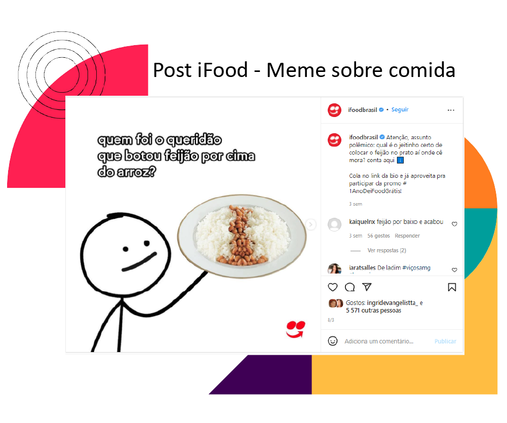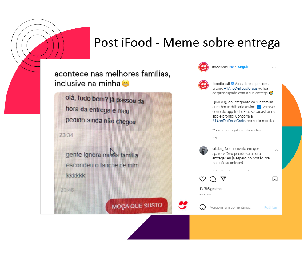 No Instagram do iFood, os 3 top posts de março foram memes sobre o recebimento de comida pelo aplicativo e de situações características dos brasileiros envolvendo comidas.
