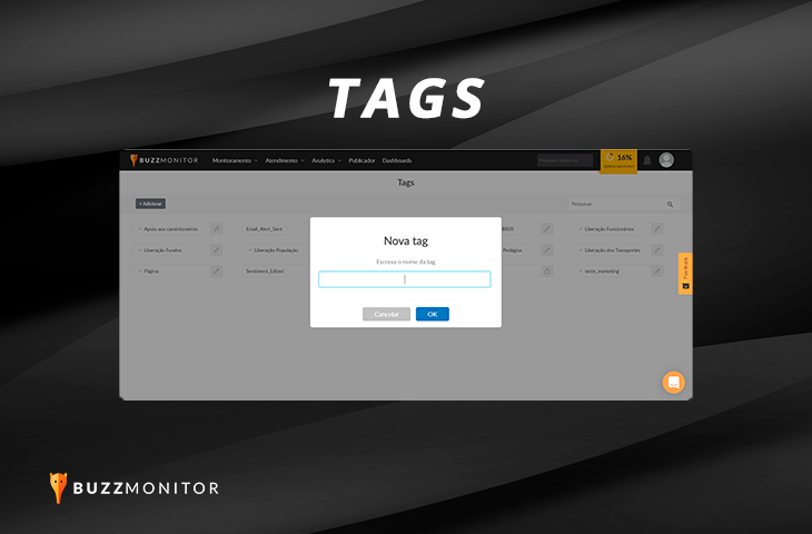 O uso de Tags é a melhor maneira de deixar o seu relatório mais assertivo. Elas funcionam como etiquetas que podem te auxiliar na classificação do Buzz e gerar relatórios aprofundados.