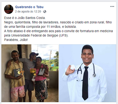 João Santos Costa, de família humilde e bolsista, entrega convite de formatura em medicina aos pais