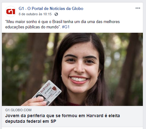 “Tábata Amaral, de 24 anos, obteve mais de 264 mil votos e quer lutar por melhoria na educação pública no Congresso Nacional.”