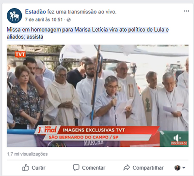 “Missa em homenagem para Marisa Letícia vira ato político de Lula e aliados”