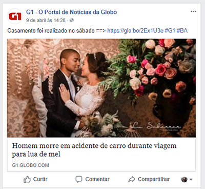 O casal seguia para Porto Seguro, na Bahia, onde passaria a Lua de Mel, quando o carro em que eles estavam bateu de frente com uma carreta.”
