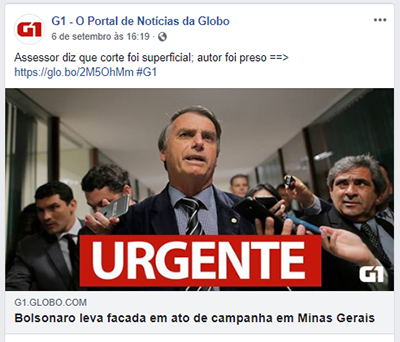 “Bolsonaro leva facada em ato de campanha em Minas Gerais”