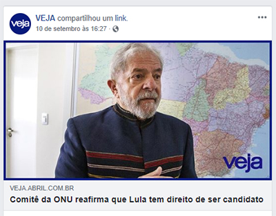 “O Comitê de Direitos Humanos da Organização das Nações Unidas reiterou, nesta segunda-feira, que o Brasil deve garantir ao ex-presidente Luiz Inácio Lula da Silva (PT) o direito de disputar as eleições de 2018. O órgão reafirma o teor de sua decisão liminar de 17 de agosto e destaca que o Estado brasileiro tem obrigação de cumprir sua determinação.”