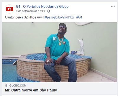 “A assessoria de imprensa do cantor disse que “com enorme pesar”, comunica o falecimento de Catra, “em decorrência de um câncer gástrico”. O funkeiro emagreceu mais de 30 kg nos últimos meses.” Que ele descanse em paz :/