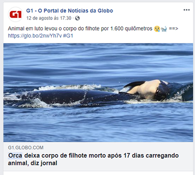 “Thlequah, a mãe orca também conhecida como J35, foi vista na tarde de quarta-feira (8), ainda carregando seu filhote morto. Ela está há 17 dias consecutivos carregando o corpo do filhote.” A orca precisou viver o luto da morte de seu filhote. Muito triste :/