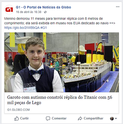 “Garoto com autismo constrói réplica do Titanic com 56 mil peças de Lego ”