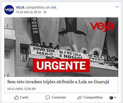 “O Movimento dos Trabalhadores Sem Teto (MTST) e a Frente Povo Sem Medo invadiram, na manhã desta segunda-feira, o apartamento tríplex atribuído ao ex-presidente Luiz Inácio Lula da Silva (PT) no Guarujá, litoral de São Paulo. A informação foi divulgada no Facebook pelo ativista Guilherme Boulos, líder do MTST e pré-candidato à Presidência da República pelo PSOL.”