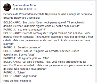 “Denúncia da Procuradora Geral da República detalha ameaça do deputado Eduardo Bolsonaro a jornalista.” Apenas leia e entenda porque essa foi a notícia mais odiada da semana.