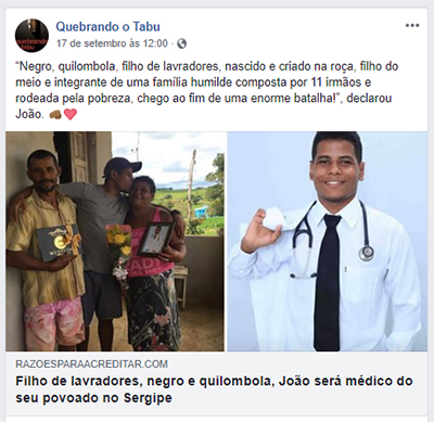 “Filho de lavradores, negro e quilombola, João será médico do seu povoado no Sergipe”