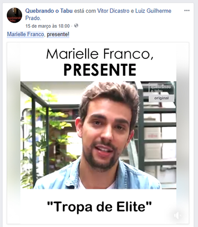 Esse vídeo é absurdamente impactante. A morte de Marielle Franco foi um choque para todo o Brasil, especialmente por se cogitar um caso de execução para queima de arquivo. E neste vídeo compara-se o que aconteceu com a vereadora do Rio de Janeiro com duas cenas dos filmes “Tropa de Elite” e “Tropa de Elite 2”.